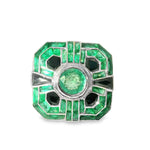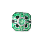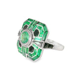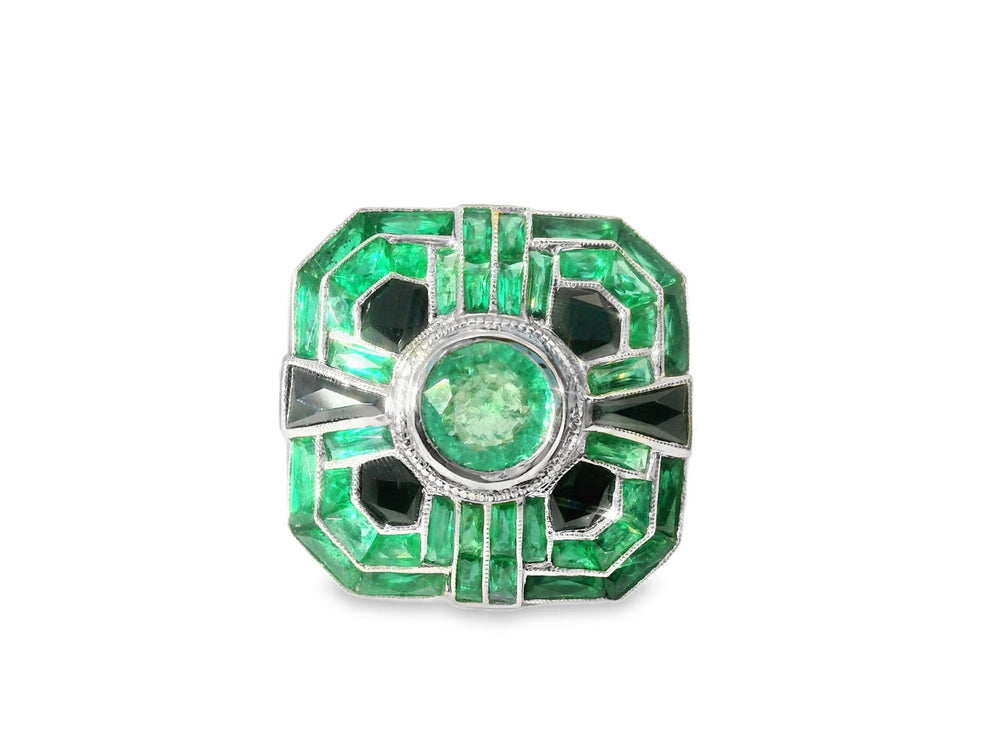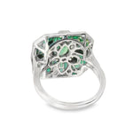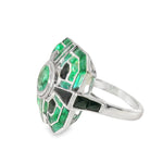 Magnificent Handmade Art Deco 18K White Gold Hand Cut Sapphire Solitaire Diamond Engagement Ring. This gorgeous ring features 1 brilliant round diamond, weighing .72 carats, natural hand cut blue sapphires, totaling 2.5 carats, surrounded by numerous brilliant round diamonds, totaling .40 carats. The center diamond is G color and SI clarity. The ring weighs 6.3 grams. It is a size 6.5. Sizing is available.ms. It is a size 6.5. Sizing is available.