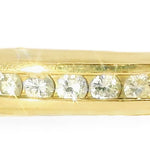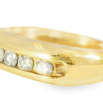 Celebrate your love with this exquisite 14K yellow gold diamond wedding band, a perfect symbol of elegance and commitment. This beautiful piece features 5 brilliant round diamonds, each measuring 3mm in diameter, with a total diamond weight of 1 carat. The diamonds are of G color and SI1 clarity, ensuring a stunning sparkle that will last a lifetime.