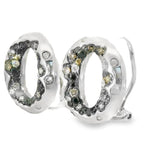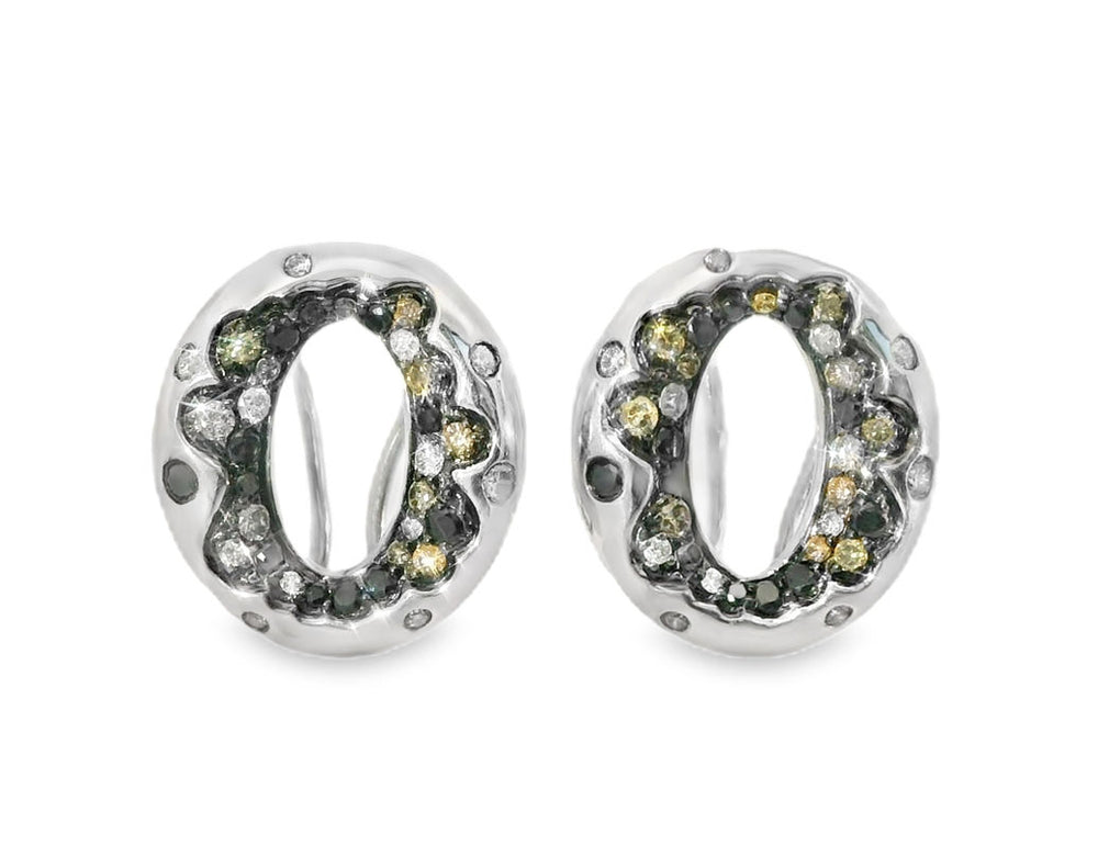 Unique 14K White Gold Champagne Diamond "O" Earrings. Each beautiful piece features numerous brilliant round champagne, black and white diamonds. The total weight of the diamonds in this pair is .81 carats. Each earring measures 3/4 of an inch long by 5/8 of an inch wide. The pair weighs 6.4 grams.