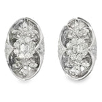Add timeless elegance to your collection with these 18K White Gold Diamond Floral Designer Earrings. Featuring a stunning floral design, this pair is adorned with brilliant round and baguette diamonds, totaling 1.42 carats.