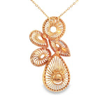 With its sleek rose gold setting, this piece is the perfect statement of refined style and grace. The pendant measures 7/8 inch wide and 1 & 5/8 inches long, making it an eye-catching addition to any jewelry collection. Weighing 7.3 grams, it provides a comfortable yet luxurious feel.