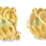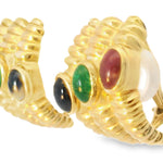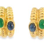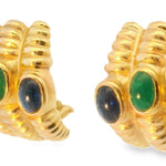 These stunning 14K Yellow Gold Clip-On Earrings are the epitome of elegance and color. Featuring a captivating mix of natural cabochon rubies, emeralds, and sapphires, each earring showcases the smooth, lustrous appeal of the cabochon cut. These earrings are the perfect statement piece for any occasion, with the vibrant gemstones beautifully set in luxurious yellow gold.