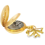 This exquisite and rare Tiffany & Co. timepiece is a true collector’s item, crafted in 18K yellow gold with diamond accents and a stunning enamel bow pin. The double-case design adds a layer of protection and elegance, while the intricate detailing reflects the timeless luxury of Tiffany & Co.