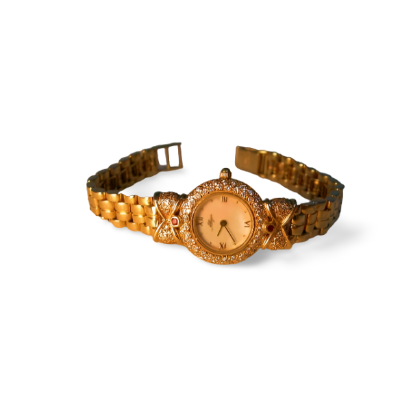 This Allegro watch combines the timeless elegance of 14K yellow gold with the striking beauty of diamonds and rubies, making it a true standout piece. Whether you’re looking for a luxury watch that doubles as a statement accessory or a piece that exudes refined taste, this timepiece is a perfect choice. With 110 diamonds and 2 rubies delicately placed around the face and precision quartz movement, it offers both beauty and functionality. This watch is an excellent investment for those who appreciate fine watches and high-end jewelry.