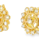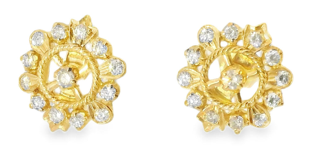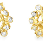 22K yellow gold diamond stud earrings. Each beautiful earring features 13 brilliant round diamonds each measuring 2 mm in diameter. The total weight of the diamonds is .48 of a carat. Each earring measures 1/2 of an inch at its widest point. The pair weighs 3.3 grams.