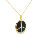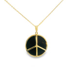 Beautiful Modern 14K Yellow Gold Black Onyx Peace Sign Pendant Slide. This sleek and stylish pendant features a bold peace sign design in the center, crafted from high-quality black onyx. Surrounded by 14K yellow gold, this pendant makes a statement of peace, positivity, and style. Ideal for those who appreciate modern and symbolic jewelry, this piece is perfect for any occasion and pairs beautifully with various chains.