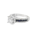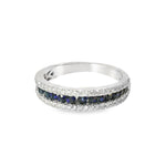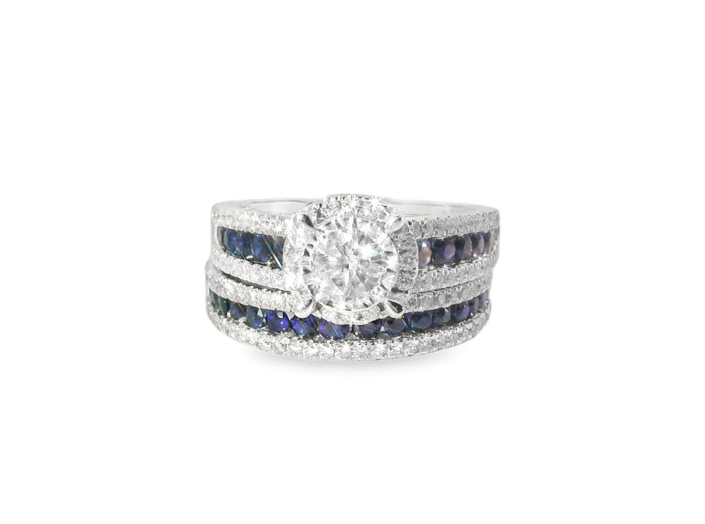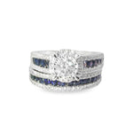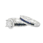 Discover the exquisite beauty of this elegant sapphire and diamond ring set. Crafted with precision, it features a stunning array of deep blue sapphires complemented by sparkling diamonds, making it a perfect matching engagement ring and wedding band set symbolizing protection and success.