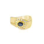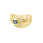 Classically beautiful with an edgy look, our 18K Yellow Gold Sapphire Diamond Mother of Pearl Ring Band is a must-have accessory. It’s a stunning ring band that highlights the natural beauty of an oval blue sapphire, sparkling diamonds, and mother of pearl. It weighs 6.5 grams, but it’s still comfortable to wear and easy to match with your favorite outfits.
