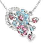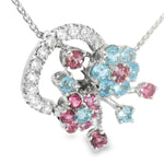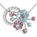 This 18K White Gold Gemstone and Diamond Floral Necklace is the perfect blend of classic beauty and vibrant color. The sparkling diamonds and the vivid blue and pink gemstones create a captivating design, making this necklace a stunning addition to any jewelry collection. Whether you're dressing up for a formal event or adding a touch of luxury to your everyday look, this necklace is sure to impress.