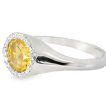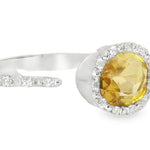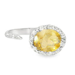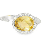Add a touch of warmth and elegance to your collection with this Gorgeous 18K White Gold Citrine Diamond Designer Ring. This stunning piece features a vibrant oval citrine at its center, measuring 7mm by 9mm and weighing 1.59 carats. The golden hue of the citrine is beautifully complemented by a sparkling halo of brilliant round diamonds, adding just the right amount of shimmer to this luxurious ring.