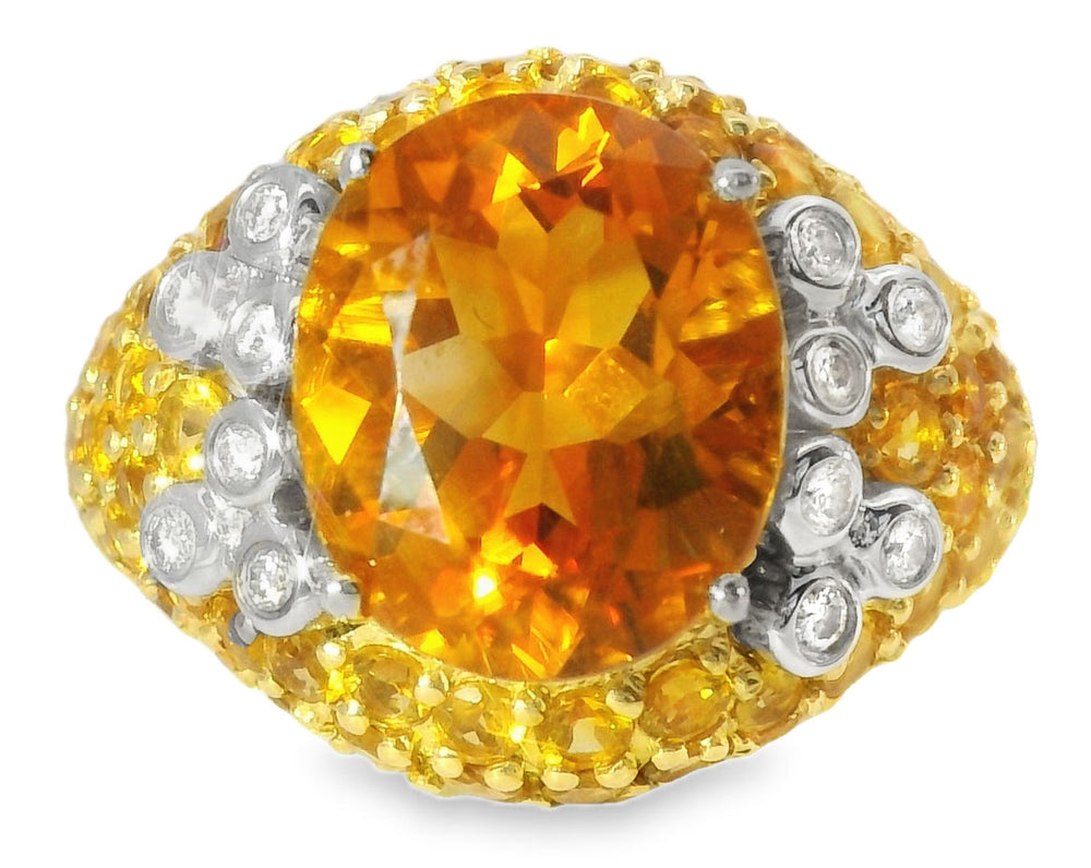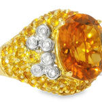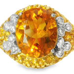 This 14K Yellow Gold Citrine Diamond Ring is a true showstopper, with the warm golden hues of the citrines beautifully contrasted by the sparkle of the diamonds. Whether you're seeking a standout accessory for a special occasion or simply looking to add a luxurious, eye-catching piece to your jewelry collection, this ring is sure to impress. Its unique design and high-quality craftsmanship make it a timeless piece you'll cherish for years to come.