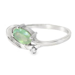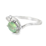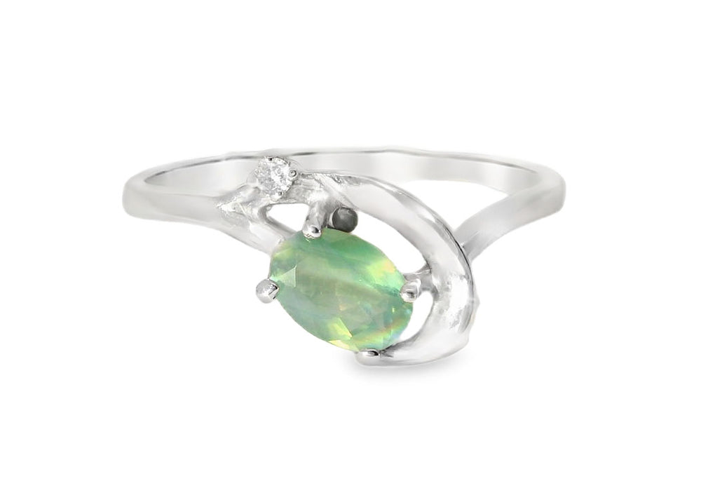 Gorgeous 14K White Gold Alexandrite Diamond Ring. This lovely piece features one natural brilliant round diamond and one natural oval alexandrite weighing 0.68 carats. It is a size 7. Sizing is available. The ring weighs 2 grams.