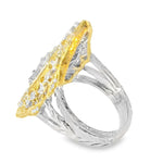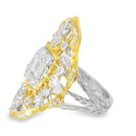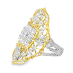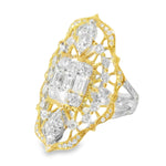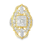 Looking for a show-stopping ring? Add this striking 18K Gold Two-Toned Filigree Diamond Ring to your jewelry collection. It features several emerald-cut round diamonds that lovely sit in an intricately designed filigree ring. It’s a heavyweight ring, too. Wearing this piece is enough to make a statement or complete your elegant look for a special event.