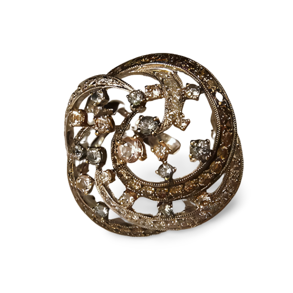 The top of the ring measures 1.25 inches in diameter, making it a bold and attention-grabbing piece. Crafted from 18K white gold, this ring weighs 12.7 grams, providing a solid and refined feel. Designed in size 7.5, the ring is also available for sizing to ensure a perfect fit. Whether worn for a special occasion or as a statement piece for everyday luxury, this cocktail ring is sure to impress.