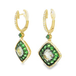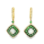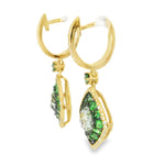 This exquisite pair of 14K Yellow Gold Green Amethyst Diamond Tsavorite Drop Dangle Earrings exudes sophistication and charm. Each earring showcases: