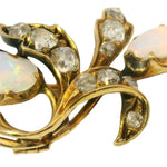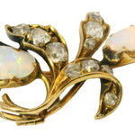 This opal and diamond brooch blends the natural beauty of opals with the brilliance of diamonds, making it a versatile and elegant addition to any jewelry collection.