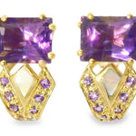 Make an unforgettable impression with this exquisite pair of 14K Yellow Gold Inlaid Mother of Pearl and Amethyst Earrings—perfect for anyone who appreciates beauty and craftsmanship.