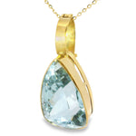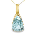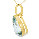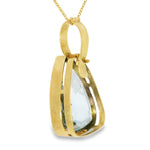 This exquisite estate pendant enhancer is crafted from 14K yellow gold and showcases a stunning natural pear-shaped blue topaz, weighing approximately 30 carats. The vibrant blue hue of the topaz is beautifully complemented by the warm tones of the gold setting, reflecting the elegance of the Art Deco era.