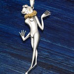 The Coquette Frog Slide Pendant is a playful and surreal creation designed by the world-renowned artist Mihail Chemiakin. Crafted from 925 Sterling Silver and gilded with 22K gold, this handmade piece blends whimsical design with fine craftsmanship. Featuring a charming frog with a coquettish pose, this pendant adds a touch of fun and artistry to your collection. Perfect for those who appreciate the fusion of nature, creativity, and luxury, this pendant is an eye-catching and unique accessory.