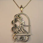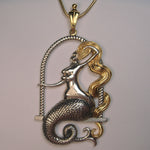 The Mermaid Slide Pendant is a striking and surreal creation inspired by the sketches of world-renowned artist Mihail Chemiakin. Meticulously crafted from 925 Sterling Silver with 22K gold gilding and intricate enamel detailing, this handmade pendant is a harmonious blend of art and fine jewelry. The whimsical mermaid design showcases Chemiakin’s distinctive style, making it a unique and captivating piece for any jewelry collection.
