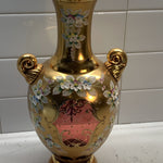 Czech Bohemian Egermann 24K Gold Encrusted Enameled Red Art Glass Vase. This stunning 12-inch vase features a deep, vibrant red base adorned with luxurious 24K gold encrusting and intricate hand-painted enameled floral designs. A true masterpiece of Bohemian artistry, this vase exudes elegance and sophistication, perfect for enhancing any space or as a prized collectible.