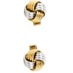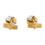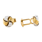 Classic 14K Two-Tone White Gold Knot Men's Cufflinks. These timeless cufflinks feature an elegant knot design crafted from high-quality 14K white and yellow gold. Perfect for the sophisticated gentleman, this versatile accessory adds a touch of class to any formal or business attire.