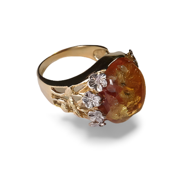 Add a piece of timeless elegance to your collection with this stunning 14K 2-Tone Gold Amber and Diamond Ring—the perfect statement for any occasion.