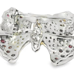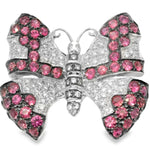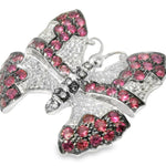 Estate 18K White Gold Ruby and Diamond Butterfly Brooch. This exquisite piece features 62 brilliant round diamonds and 48 natural round rubies, with a total ruby weight of 1.58 carats...
