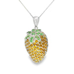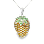 This charming 14K White Gold Orange Citrine and Tsavorite Strawberry Necklace/Pendant is a delightful blend of vibrant gemstones and intricate design. The pendant showcases numerous round citrines and tsavorites, with...