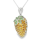 This 14K White Gold Orange Citrine and Tsavorite Strawberry Necklace/Pendant is perfect for those who appreciate fun, nature-inspired designs with a pop of color. The strawberry-inspired pendant with citrine and tsavorite gemstones is a refreshing and playful take on classic jewelry, making it an excellent addition to any collection.