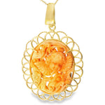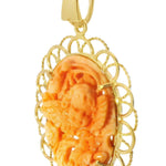14K Yellow Gold Filigree Coral Pendant with Angel & Flowers Design