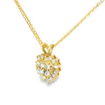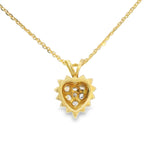 14K yellow gold diamond heart pendant. This unique piece features 21 brilliant round diamonds measuring about 2.5 mm in diameter each. The diamonds are D color and VS clarity. The...