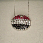 Showcase timeless elegance with this 14K White Gold Sapphire Ruby and Diamond Pendant Necklace. This stunning piece features an exquisite combination of natural gemstones, including 22 round blue sapphires, 29 round white sapphires, and 17 round rubies, each measuring 3 mm in diameter. With a total sapphire weight of 1.5 carats, this pendant radiates brilliance and charm. The pendant measures 7/8 of an inch long by 1 1/8 of an inch wide, paired with an 18-inch white gold chain, offering a classic length that complements any neckline. Weighing 7.1 grams, this necklace is a perfect balance of luxury and comfort.