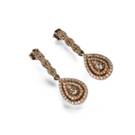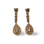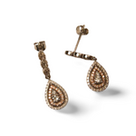 Lovely 14K White Two-Tone Gold Diamond Tear Drop Dangle Earrings. Each earring features numerous brilliant round diamonds of varying shapes and sizes. The total weight of all the diamonds in both earrings 0.5 carats. Each piece measures almost 1 inch long by 3/16 of an inch wide. The set weighs 2.4 grams.