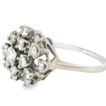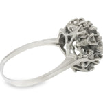 This exquisite estate 14K white gold filigree ring is a timeless treasure, blending vintage charm with dazzling brilliance. Featuring 19 brilliant round white diamonds, ranging from 2.5mm to 4mm in diameter, this piece radiates elegance and sophistication. The total diamond weight of 1.2 carats ensures a captivating sparkle, making it the perfect statement ring for any occasion.