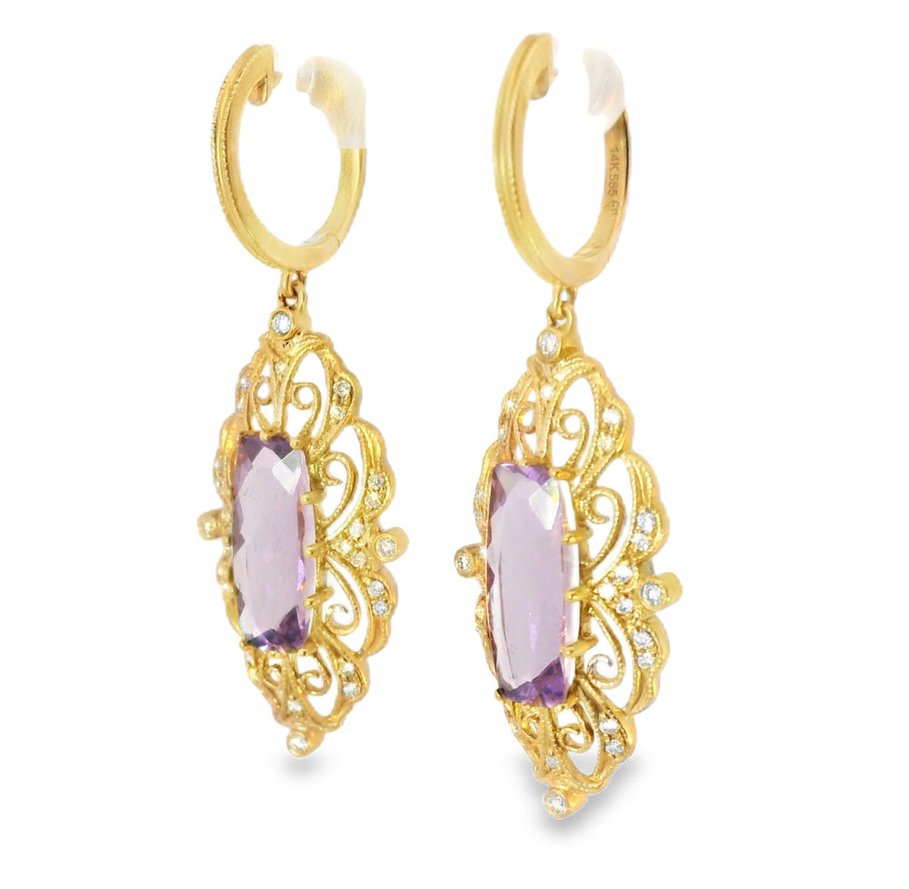 These earrings make a perfect gift for any occasion or as an addition to a vintage jewelry collection. Their unique blend of diamonds and amethyst in pink rose gold is timeless and elegant.
