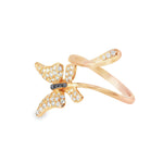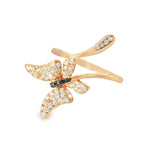 Discover the enchanting beauty of this butterfly ring, crafted with intricate details and brilliant round diamonds. Its delicate design captures the essence of nature, making it a perfect accessory for any occasion.