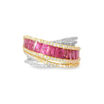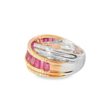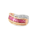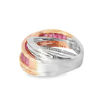 Discover the beauty of this elegant two-tone ring, featuring a stunning design that combines both white and rose gold. The ring is adorned with delicate rubies and diamond accents that add a touch of sophistication and charm. Perfect for any occasion, this piece is a must-have for those who appreciate fine jewelry.
