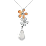 This 18K White Gold Gemstone and Diamond Floral Drop Pendant/Necklace combines the rich colors of natural gemstones with the brilliance of diamonds, creating a piece that radiates elegance and timeless beauty. The floral design is perfect for adding a touch of nature-inspired grace to any outfit, making this necklace a must-have accessory for both daily wear and special occasions.