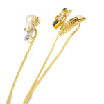 Victorian 14K Yellow White Gold Sapphire Diamond Seed Pearl Pin Set. This gorgeous set features 3 Victorian pins with diamonds, seed pearls and natural sapphires. The pins measure 2.75, 2.5 and 2.25 inches long by 3/8 of an inch wide, at its widest point. The set weighs 4.5 grams.