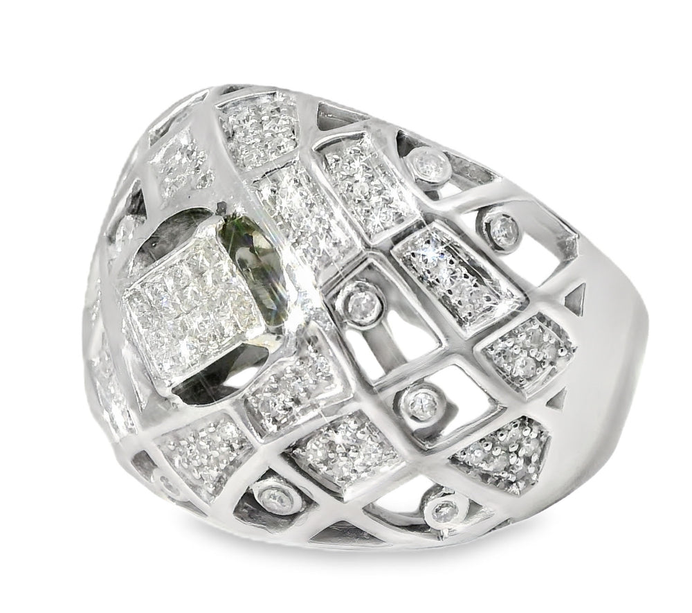 This Estate 14K White Gold Designer Diamond Band is a stunning addition to any fine jewelry collection. With its intricate design and sparkling diamonds, it is perfect for marking a special occasion or simply adding a touch of elegance to your daily style. The combination of high-quality diamonds and luxurious white gold ensures it will remain a cherished piece for years to come.