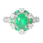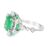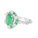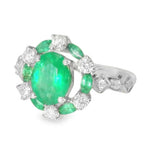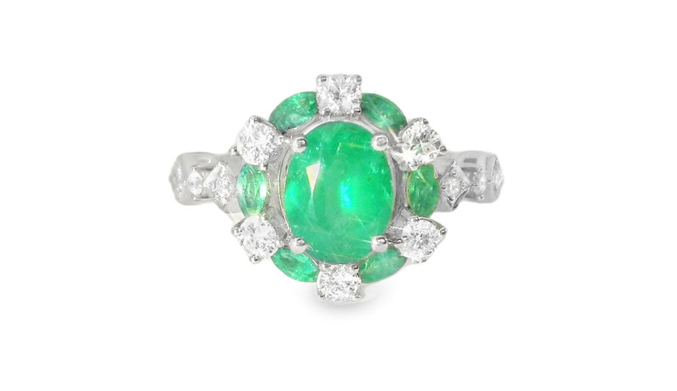 This stunning 14K white gold cluster ring is a breathtaking display of natural emeralds and brilliant diamonds, creating an elegant and timeless design. Perfect for special occasions or adding a touch of sophistication to any jewelry collection.