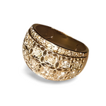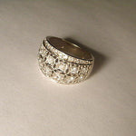 This 18K white gold diamond designer ring is the epitome of elegance and sophistication. The intricate filigree setting elevates the beauty of the 12 round diamonds at the center, while the additional diamonds on the sides ensure it shines from every angle. The 18K white gold provides a stunning backdrop for the diamonds, giving this ring a crisp, modern appeal that is perfect for any occasion. Whether you're looking for a statement piece or a meaningful gift, this ring offers a luxurious and timeless option.