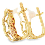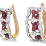 Beautiful 14K Pink Rose Gold Diamond Ruby Flower Huggie Earrings