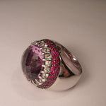 This bold amethyst, ruby, and sapphire ring is perfect for adding a touch of glamour to any look.