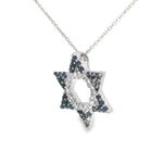 This stunning Star of David pendant is a beautiful blend of tradition and elegance. Crafted from 14k white gold, it features intricate detailing vibrant sapphires and brilliant round diamonds that...