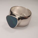 Beautiful Sterling Silver Opal Ring Band. This stunning piece features a large, polished opal as its centerpiece, measuring 10 mm in diameter. The opal's radiant play-of-color creates a mesmerizing effect, beautifully complemented by the sleek sterling silver band. With its bold yet elegant design, this ring is perfect for both everyday wear and special occasions.