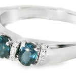 This stunning 14K white gold band ring features a classic five-stone design, showcasing vibrant natural sapphires accentuated by sparkling round diamonds. The deep blue sapphires create a striking contrast against...