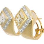 These fabulous 14K white gold diamond aquamarine earrings offer a stunning combination of brilliance and vibrant color. Each earring features 32 round single-cut diamonds, totaling 0.20 carats, which beautifully frame two princess-cut aquamarines. The aquamarines add a cool, refreshing hue, perfectly complementing the sparkling diamonds. Measuring 7/8 inch long by 5/8 inch wide, these earrings make a bold yet elegant statement, adding sophistication to any occasion. The pair weighs 7.1 grams, offering a comfortable fit and high-quality craftsmanship.