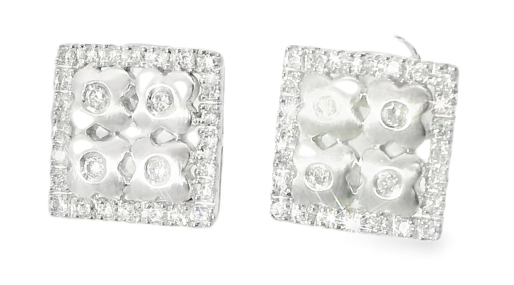 These stunning 14K white gold square earrings feature a radiant floral-inspired diamond arrangement, adding a touch of timeless elegance and brilliance to any jewelry collection. Designed with French clip backs, they provide a secure and comfortable fit, perfect for any occasion.